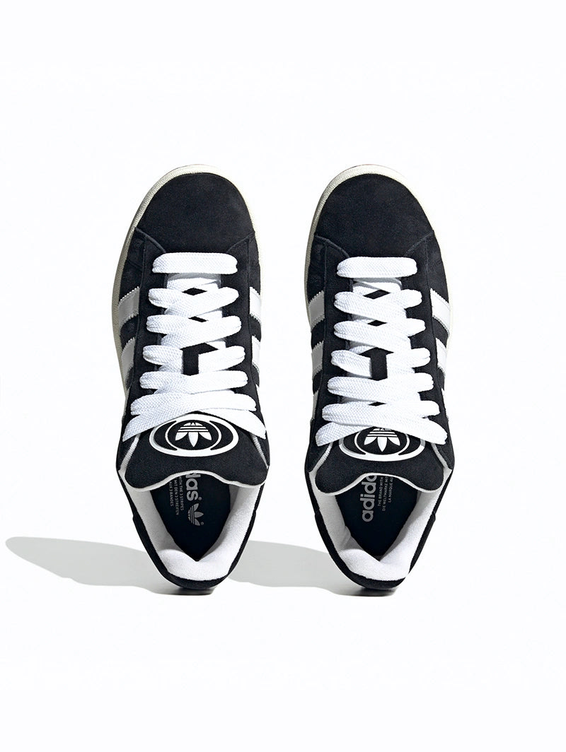 Adidas Campus 00s 'Black' – поєднання класичного дизайну та актуальних трендів у чорному кольорі. Замшевий верх і контрастні білі смуги створюють ідеальний баланс між стилем та універсальністю.