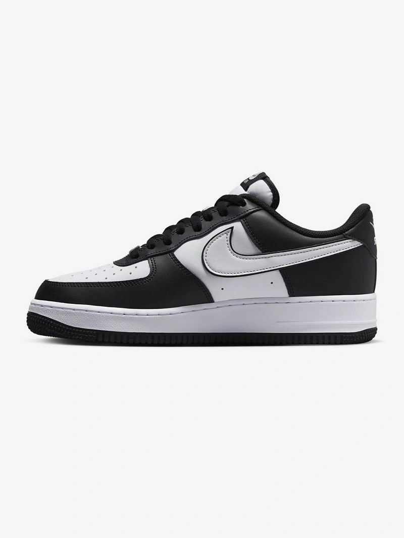 Nike Air Force 1 Low 07 'Panda' – стильна чорно-біла версія класичних Air Force 1. Контрастний дизайн у культових відтінках "Panda" поєднує універсальність та сучасний вигляд. Верх із натуральної шкіри гарантує міцність, а технологія Air забезпечує комфорт на кожен день.